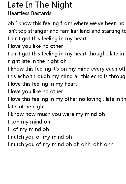 I ain't got this feeling in my heart though.. late in the night late in the night late in the night oh