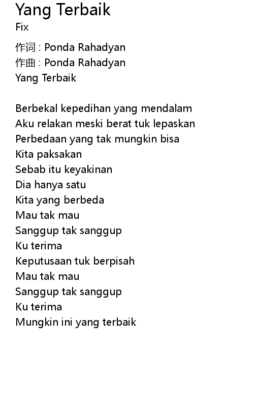 | 歌曲 | Yang Terbaik |