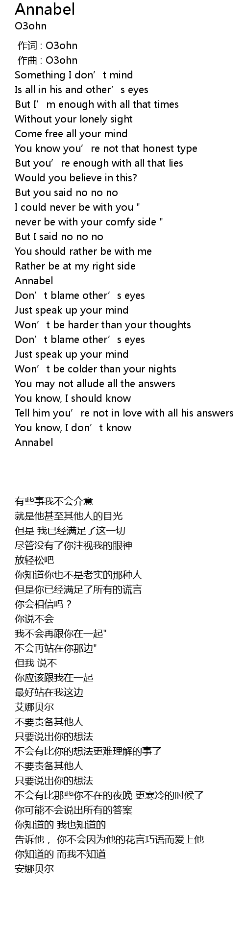 | 歌曲 | Annabel |