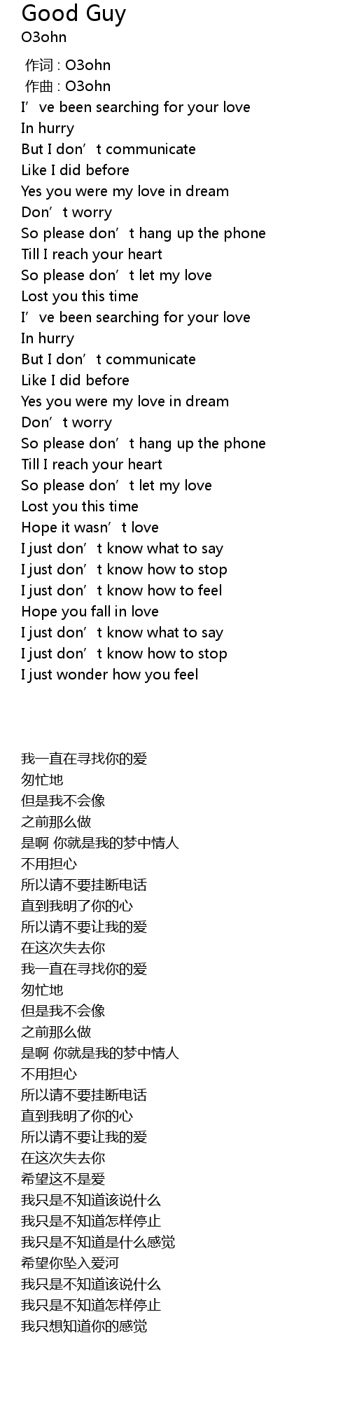 | [00:00.000] | 作词 : O3ohn |