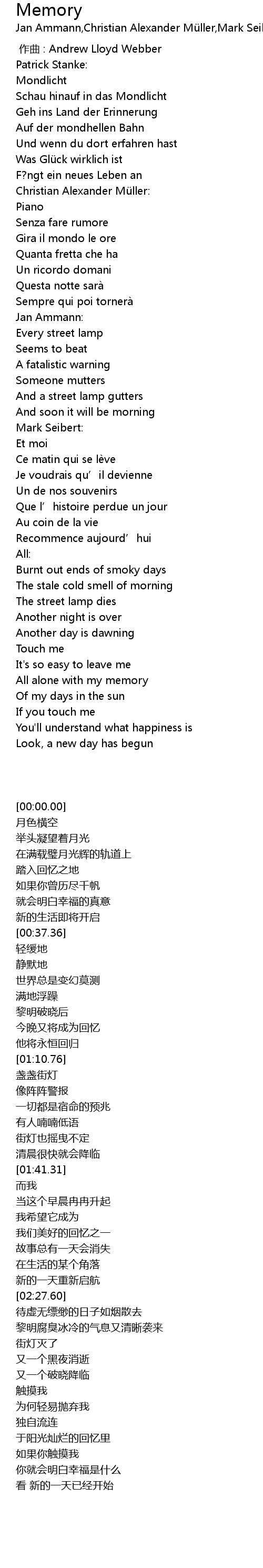 | [00:00.000] | zuo qu : Andrew Lloyd Webber |
