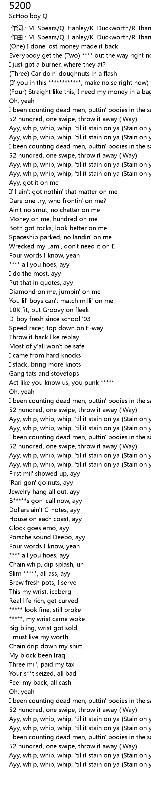 | [00:19.75] | 52 hundred, one swipe, throw it away ('Way) |