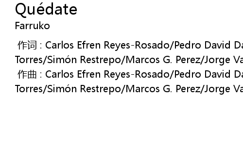 | [00:00.000] | 作曲 : Carlos Efren Reyes-Rosado/Pedro David Daleccio Torres/Simón Restrepo/Marcos G. Perez/Jorge Valdes/Franklin Jovani Martinez |
