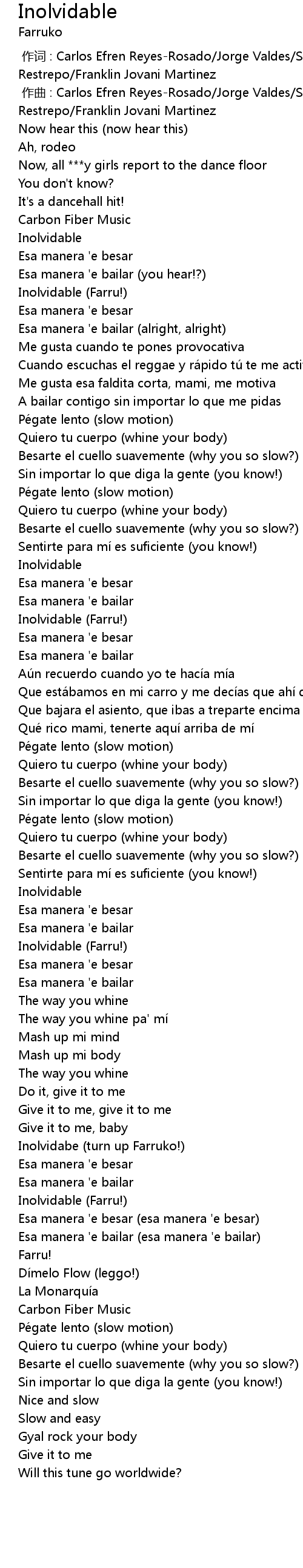 | [02:39.12] | Inolvidabe (turn up Farruko!) |