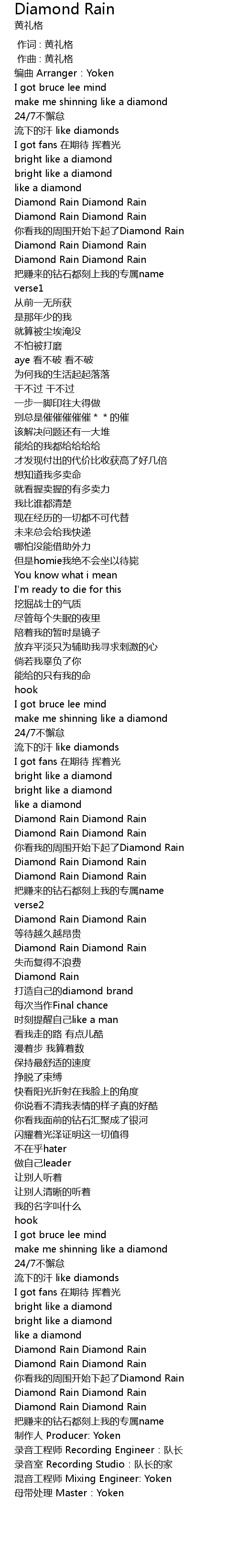 | [02:58.187] | 你看我的周围开始下起了Diamond Rain |