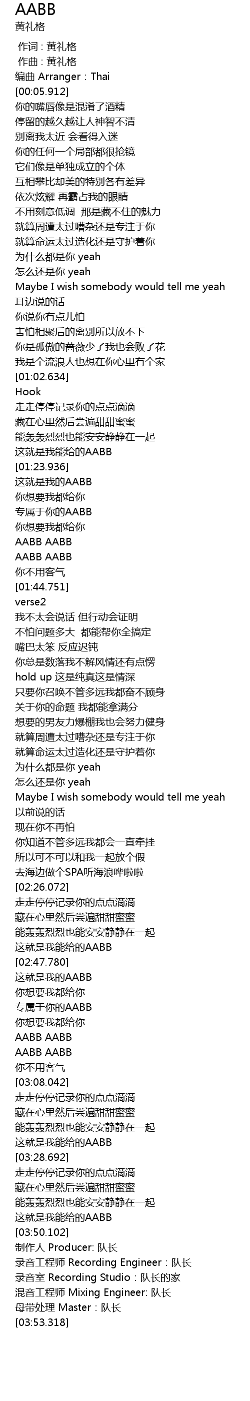 | [03:24.935] | zhe jiu shi wo neng gei de AABB |