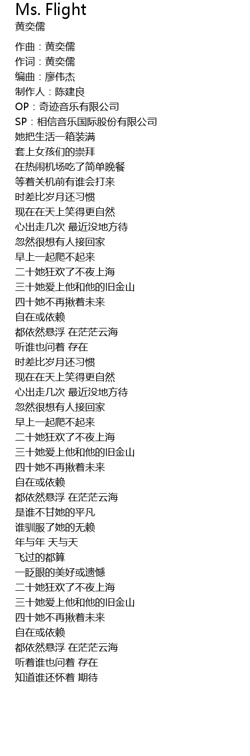 | 歌曲 | Ms. Flight |