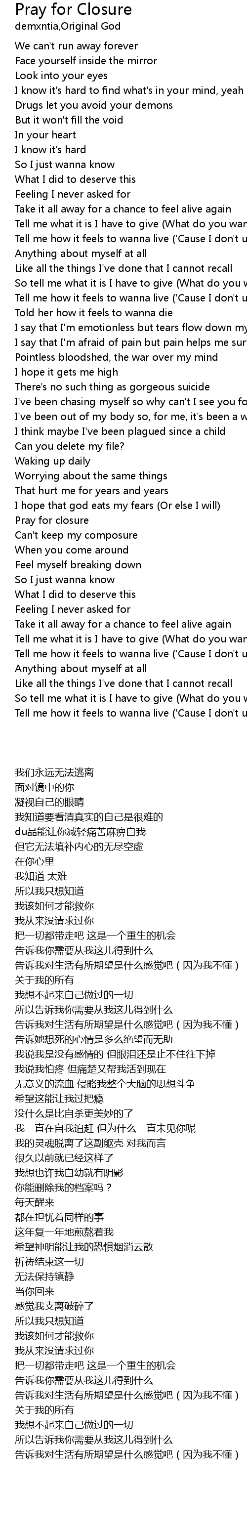 [02:51.75] Tell me how it feels to wanna live ('Cause I don't understand)