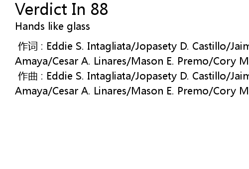 | [00:00.000] | 作词 : Eddie S. Intagliata/Jopasety D. Castillo/Jaime E. Amaya/Cesar A. Linares/Mason E. Premo/Cory M. McMahan |