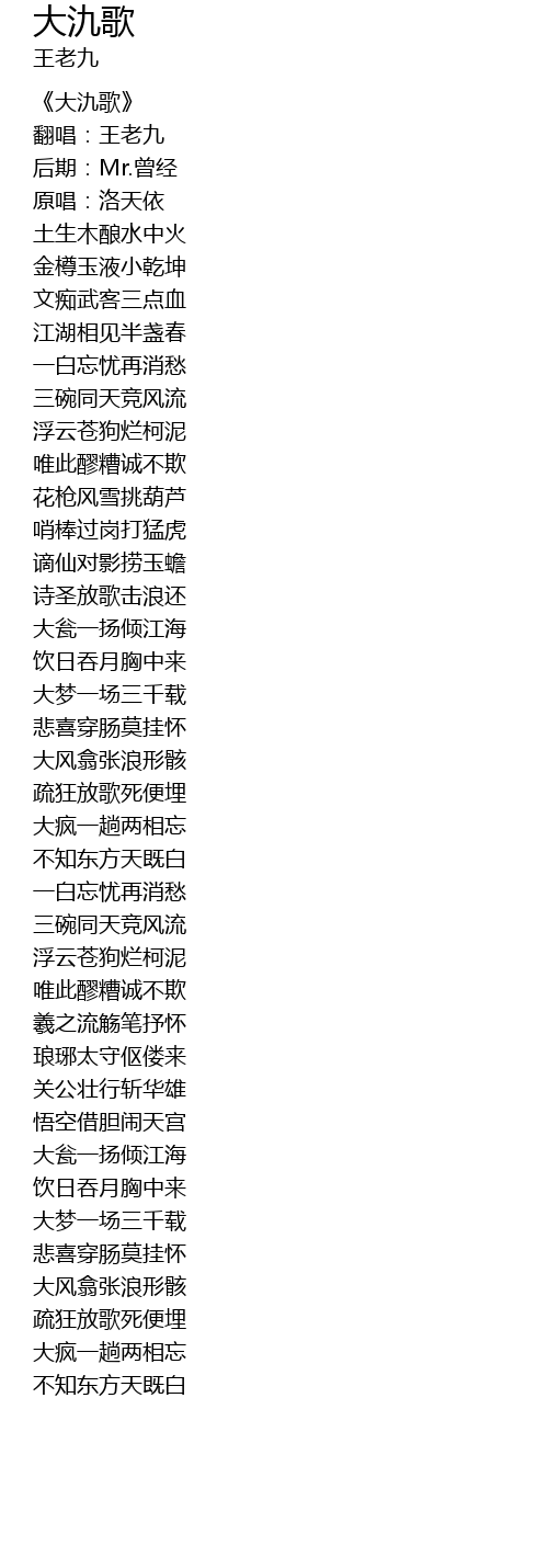 | [00:04.334] | fān chàng: wáng lǎo jiǔ |
