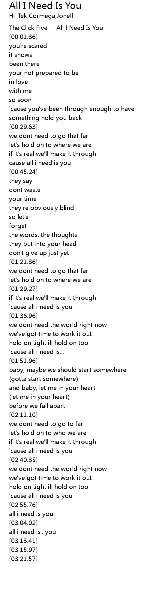 | [00:00.38] | The Click Five -- All I Need Is You |