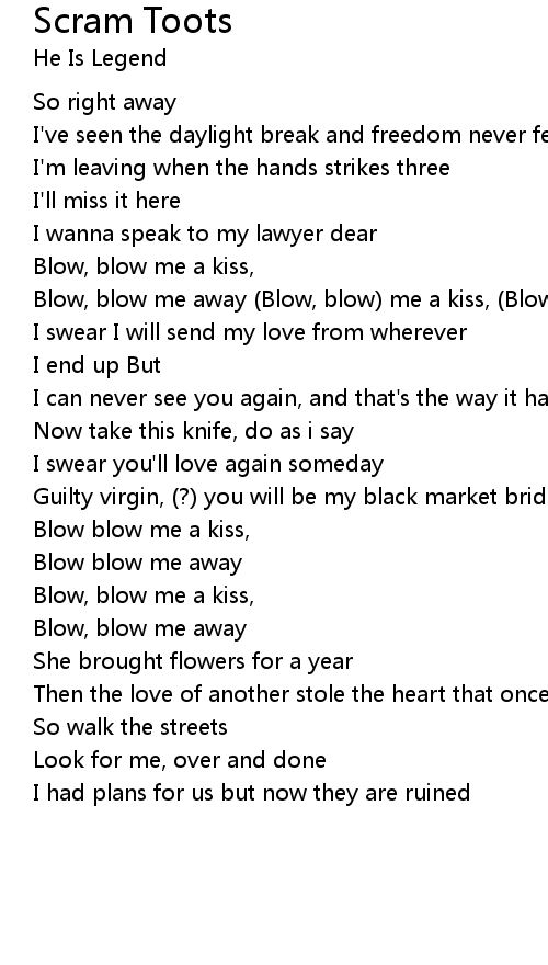 Blow, blow me away (Blow, blow) me a kiss, (Blow, blow) me away |