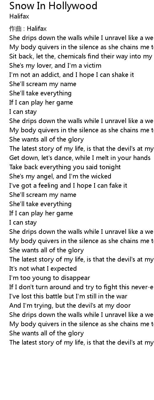 | The latest story of my life, is that the devil' s at my door tonight | |