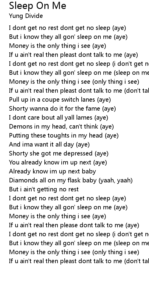 But i know they all gon' sleep on me (sleep on me) |