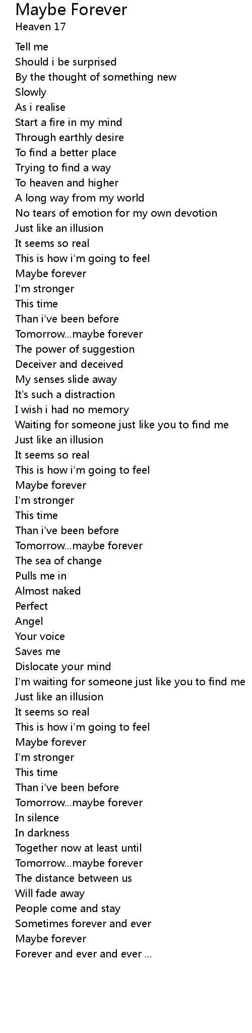 Sometimes forever and ever |