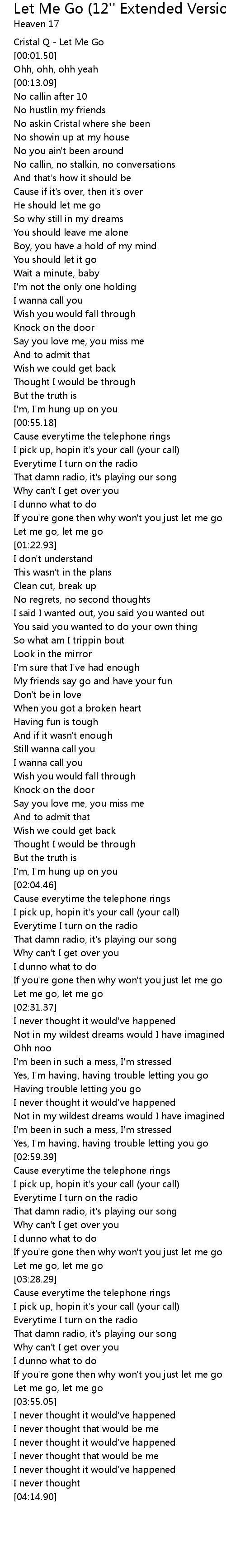 Cristal Q - Let Me Go |