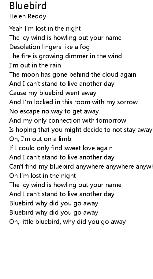 Bluebird why did you go away |