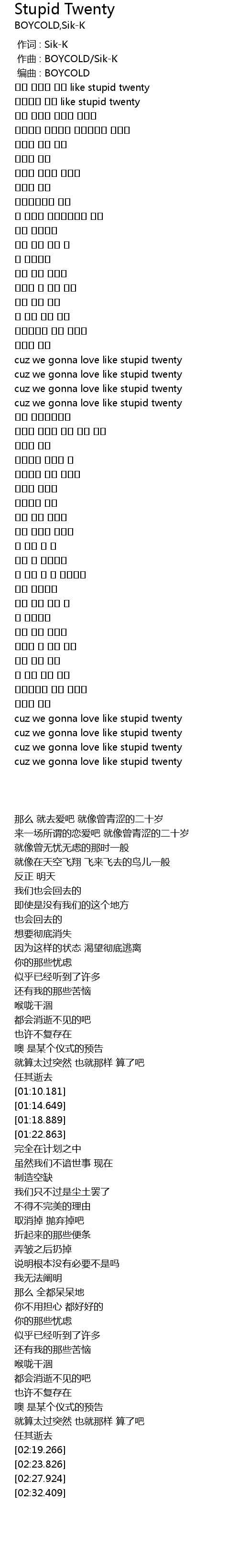| [02:32.409] | cuz we gonna love like stupid twenty |