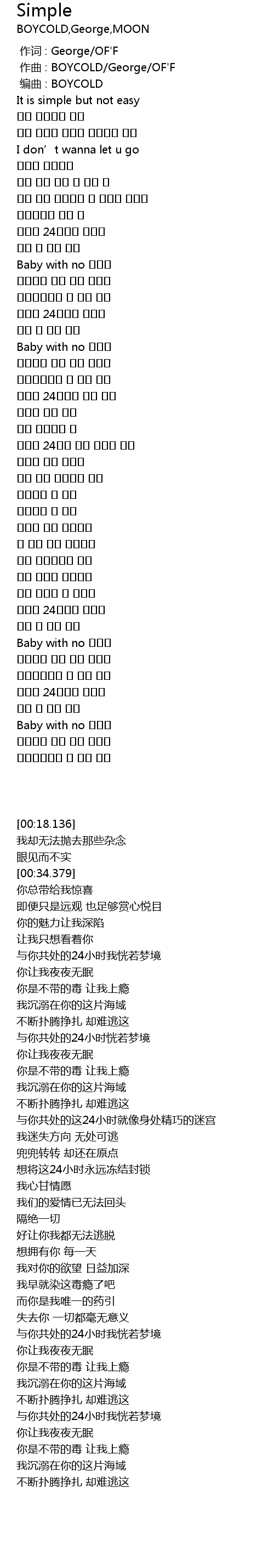 | [00:01.000] | 作曲 : BOYCOLD/George/OF'F |