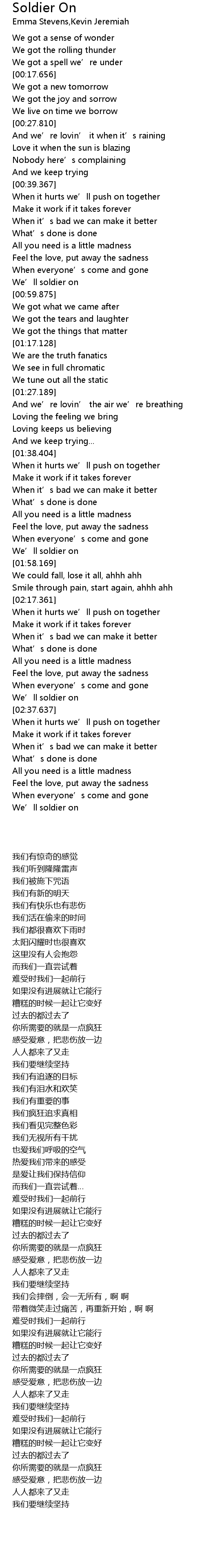 | [02:55.233] | We' ll soldier on |