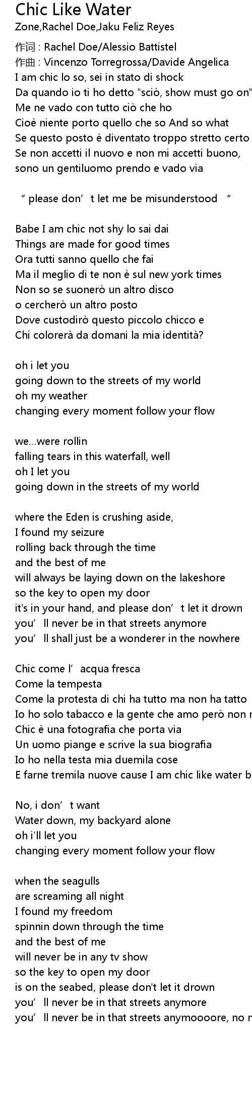| 歌曲 | Chic Like Water |