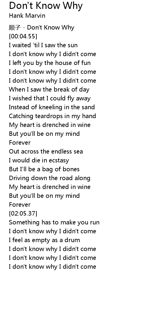 | [00:00.28] | shun zi Don' t Know Why |