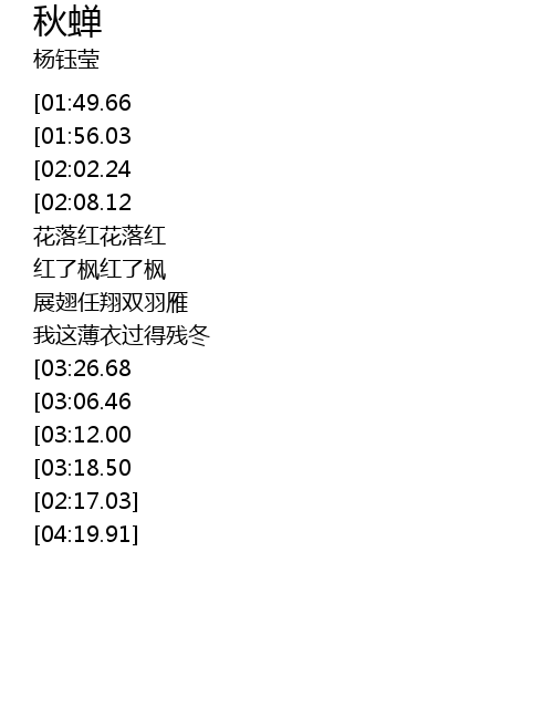 | [03:32.95][03:06.46][02:40.25][01:29.89] | 春走了夏也去 秋意浓 |