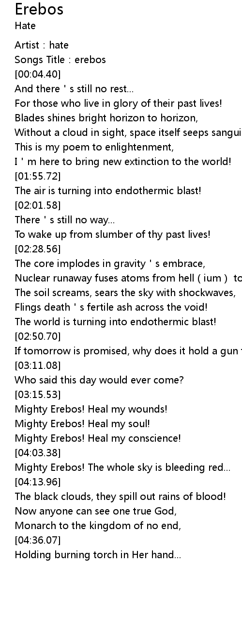 | [04:08.77] | Mighty Erebos! The whole sky is bleeding red... |