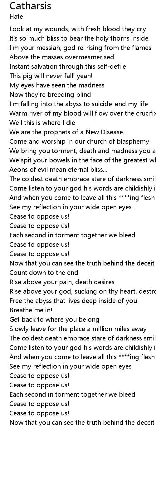 | Rise above your god, sucking on thy heart, destroying your soul | |