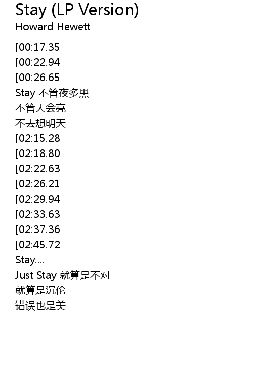 | [01:46.24][00:17.35] | Stay 因为夜太美 |