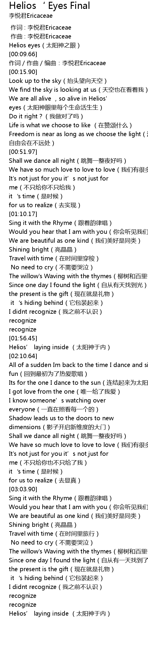 | [03:56.46] | Helios’ laying inside (太阳神于内) |