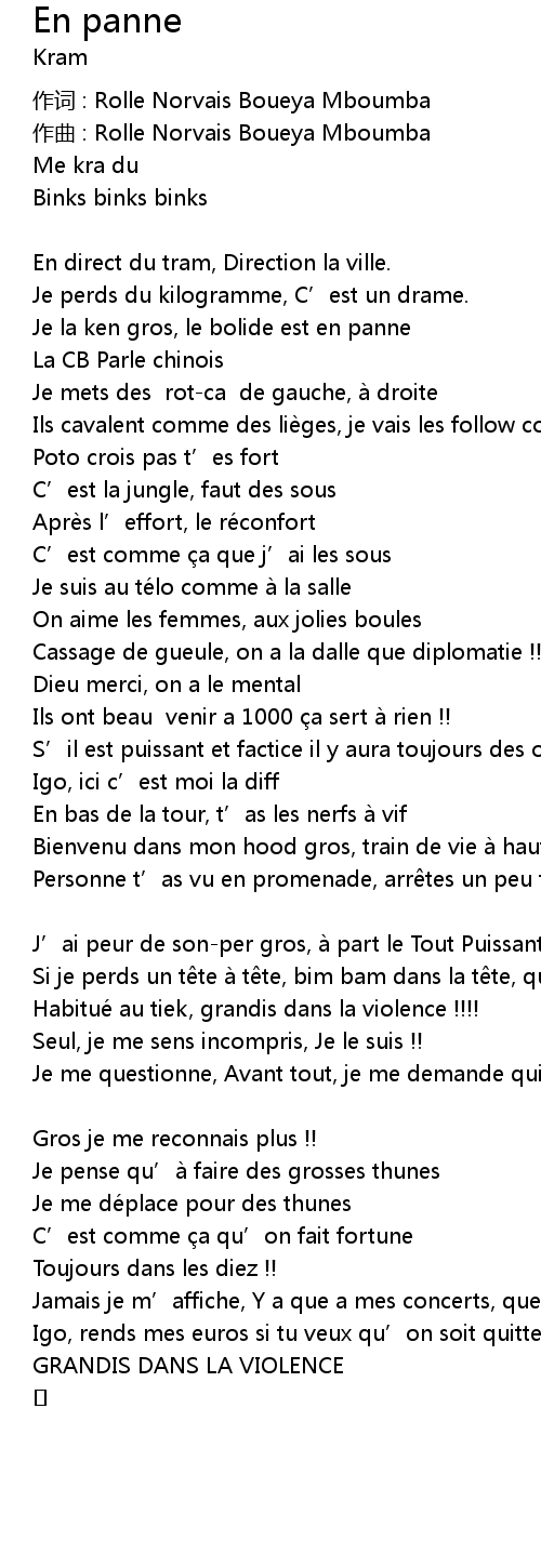 | 作词 : Rolle Norvais Boueya Mboumba | |