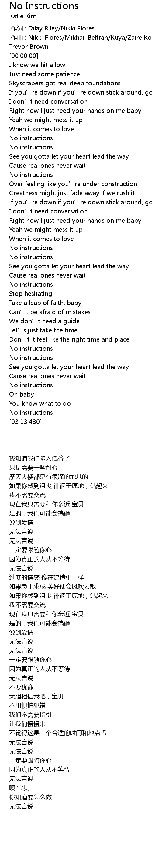 | [00:00.000] | 作词 : Talay Riley/Nikki Flores |