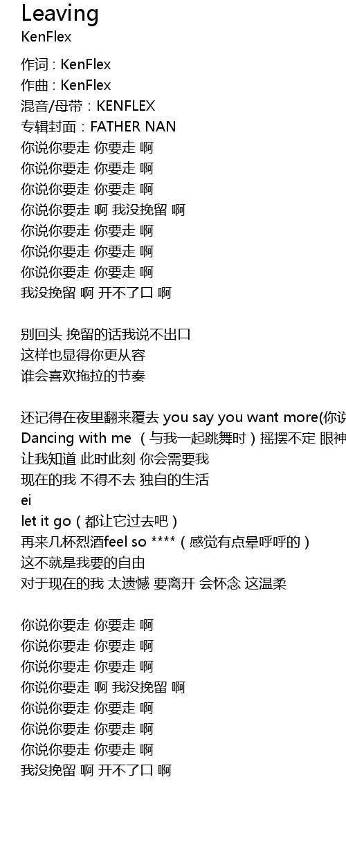 | 歌曲 | Leaving |