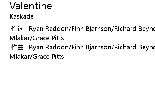 | [00:00.000] | 作词 : Ryan Raddon/Finn Bjarnson/Richard Beynon/Michael Mlakar/Grace Pitts |
