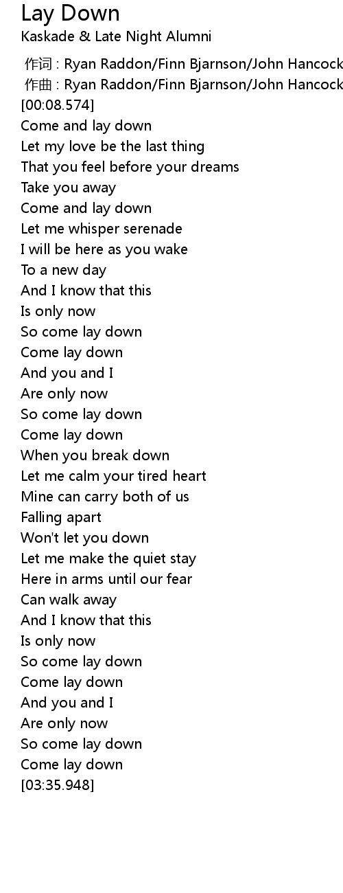 | [00:10.424] | Come and lay down |
