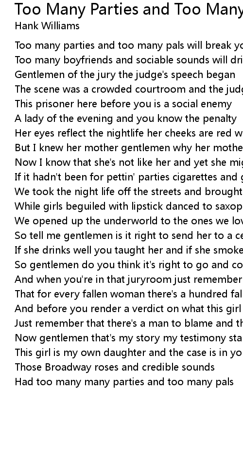 Had too many many parties and too many pals |
