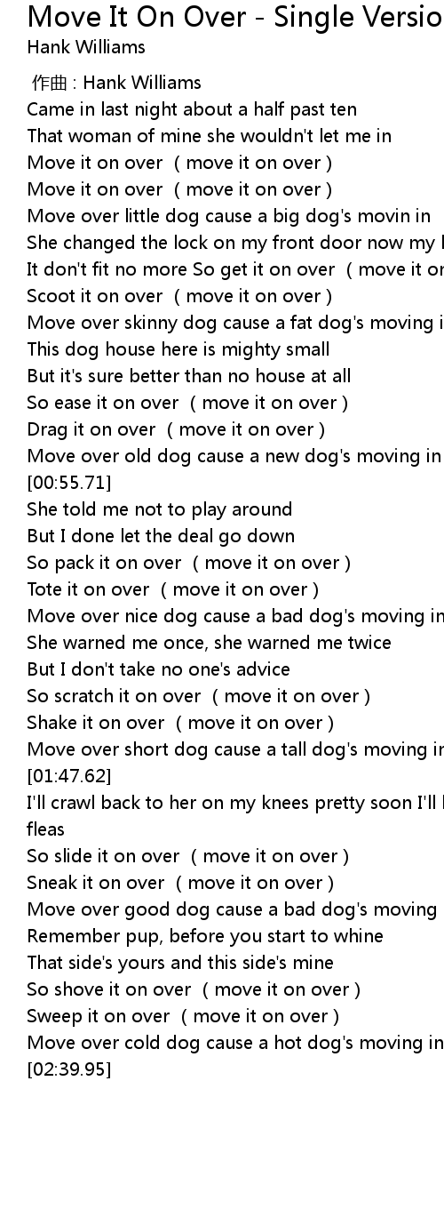 | [00:27.47] | It don' t fit no more So get it on over move it on over |