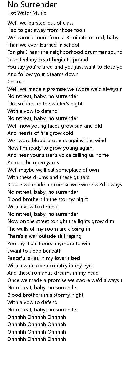 No retreat, baby, no surrender |