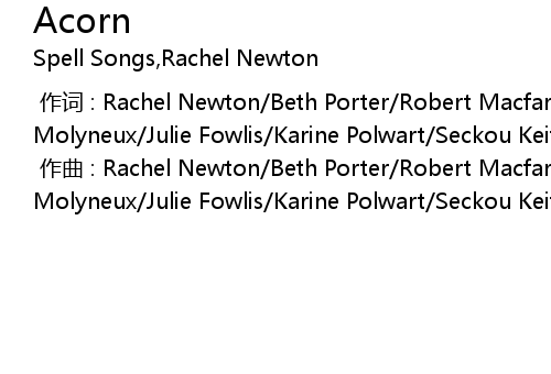 | [00:00.000] | 作曲 : Rachel Newton/Beth Porter/Robert Macfarlane/Jim Molyneux/Julie Fowlis/Karine Polwart/Seckou Keita/Jackie Morris/Kris Drever |