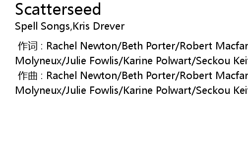 | [00:00.000] | 作曲 : Rachel Newton/Beth Porter/Robert Macfarlane/Jim Molyneux/Julie Fowlis/Karine Polwart/Seckou Keita/Jackie Morris/Kris Drever |