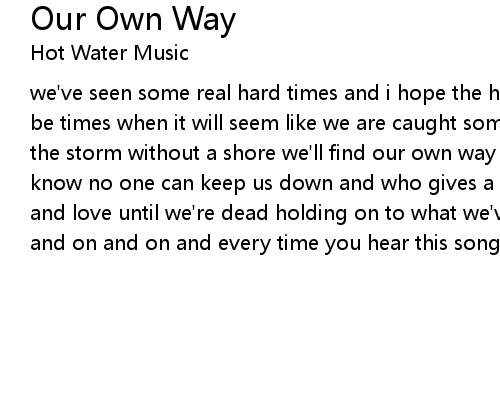 | we've seen some real hard times and i hope the hardest are behind but there will be times when it will seem like we are caught someplace in between the ocean and the storm without a shore we'll find our own way home and sing out every song we know no one can keep us down and who gives a fuck what anybody says we'll live and love until we're dead holding on to what we've come to know and on and on and on and on and every time you hear this song be sure you are not alone |
