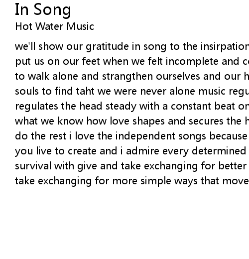 we'll show our gratitude in song to the insirpations we have known that helped put us on our feet when we felt incomplete and could not carry on when we chose to walk alone and strangthen ourselves and our homes just searching for our souls to find taht we were never alone music regulates the breath while rhythm regulates the head steady with a constant beat on a roll simply reminding us of what we know how love shapes and secures the heart while truth can't help but to do the rest i love the independent songs because i can relate and i respect what you live to create and i admire every determined stray from a sterile life survival with give and take exchanging for better ways survival through give and take exchanging for more simple ways that move us through the breakdowns