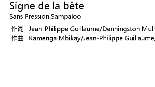 | [00:00.000] | 作词 : Jean-Philippe Guillaume/Denningston Mullings/Kamenga Mbikay |