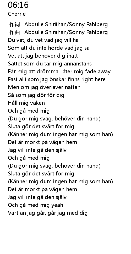 | [00:38.86] | F r mig att dr mma, l ter mig fade away |
