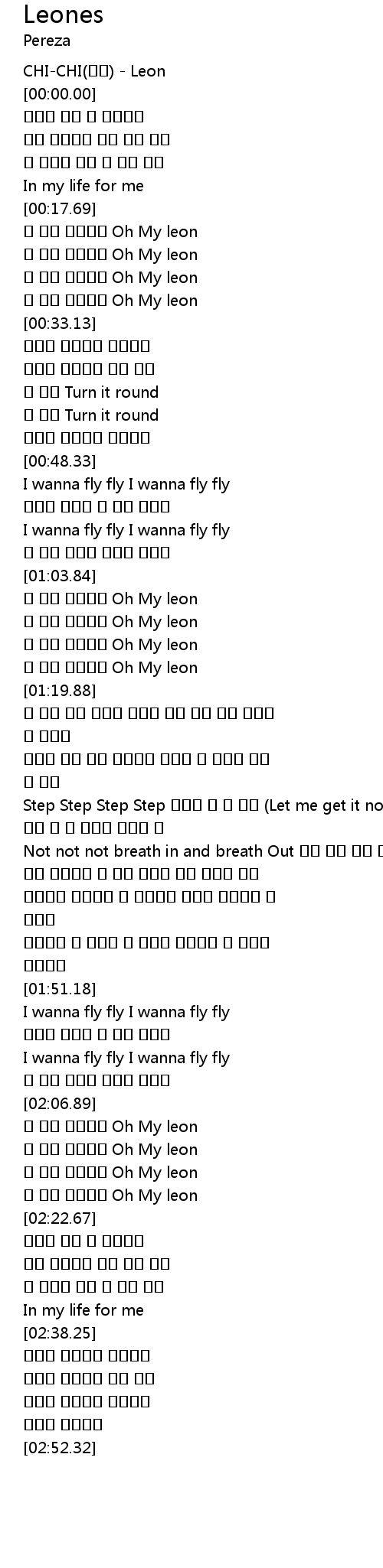 | [02:15.00] | 나 나를 잡아줘요 Oh My leon |