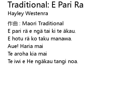 | 歌曲 | Traditional: E Pari Ra |