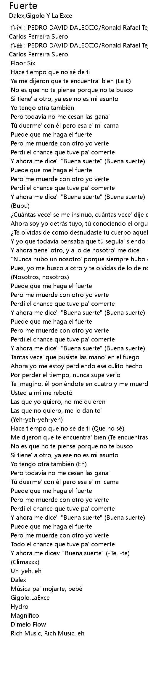 | [01:39.606] | Y ahora me dice': " Buena suerte" Buena suerte |