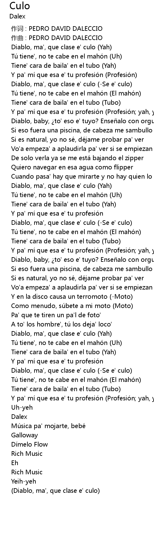 | [02:16.371] | Diablo, ma', que clase e' culo Se e' culo |