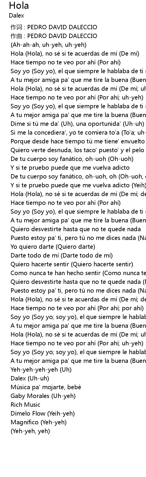 | [01:35.150] | Hola (Hola), no sé si te acuerdas de mí (De mí; de mí) |